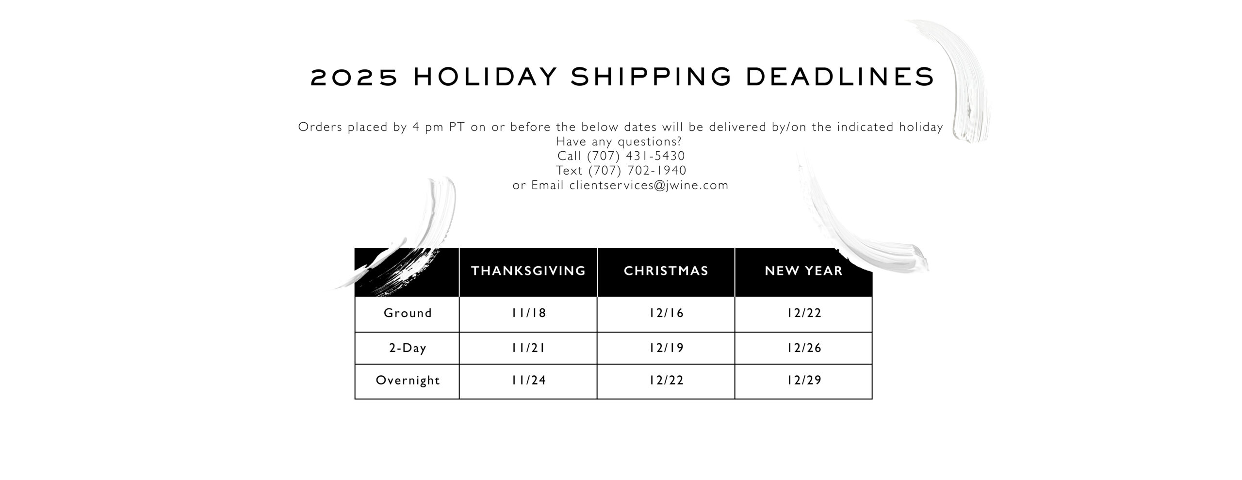 Black Friday savings sitewide! Club J members receive 35% off on 6+ bottles beginning 11/10. Non-Club: 25% off